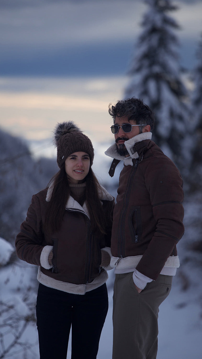 Gold Chiodo Shearling Style Women's Dark Brown